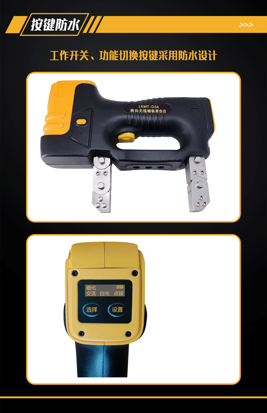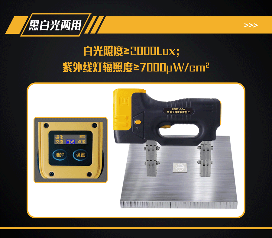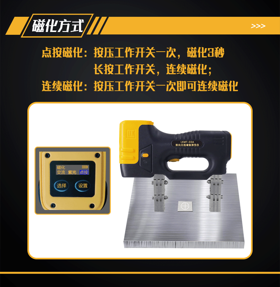 1、LKMT-D3A轉向無線磁軛探傷儀,探頭與鋰電池一體式設計,無需使用線鏈接;