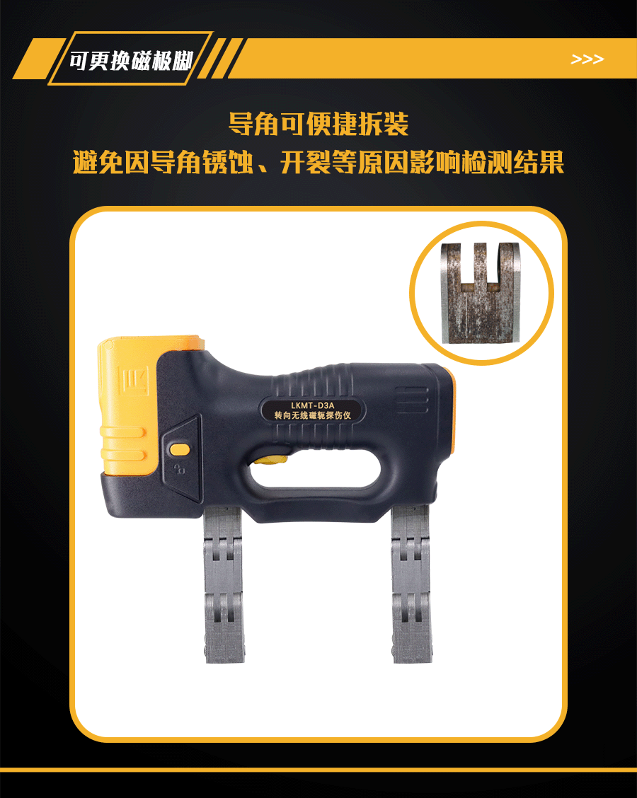 7、平面、A型、45°、大斜面4種磁極腳,適用更多的檢測工件(選配);