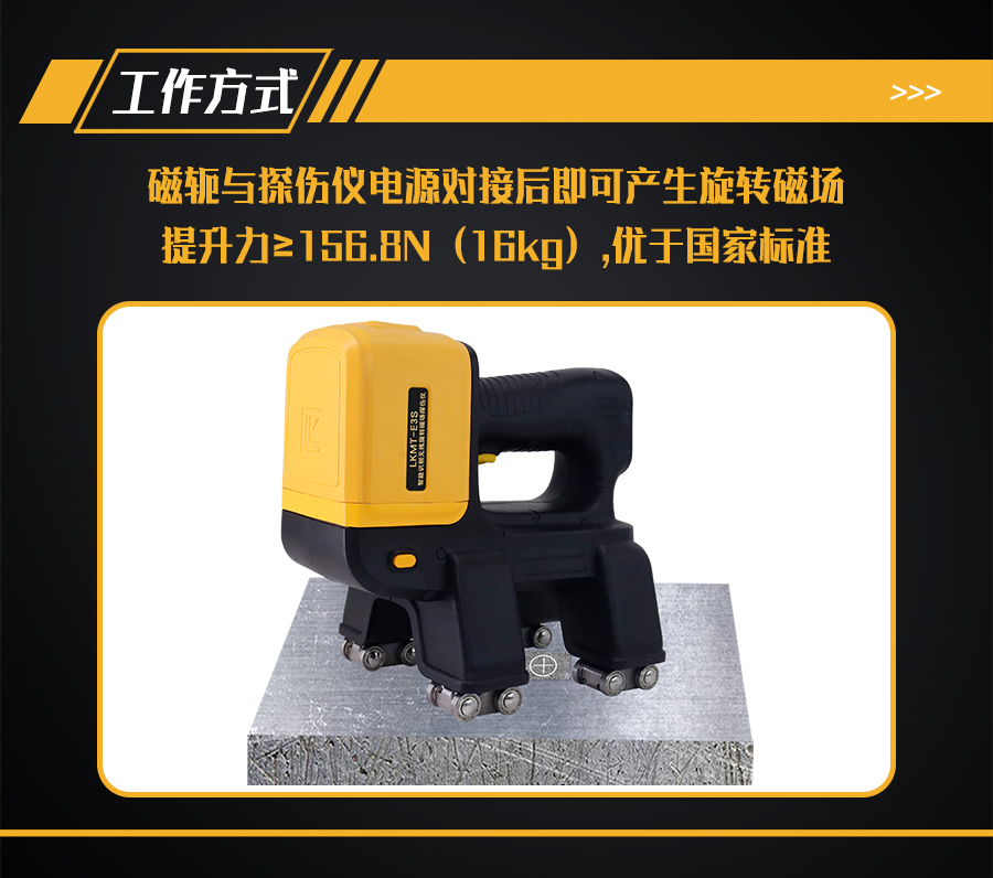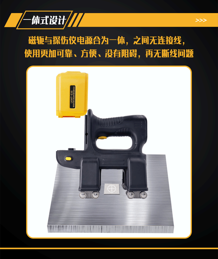 1、LKMT-E3S一體式旋轉(zhuǎn)磁場探傷儀,探頭與鋰電池一體式設(shè)計,無需使用線鏈接。