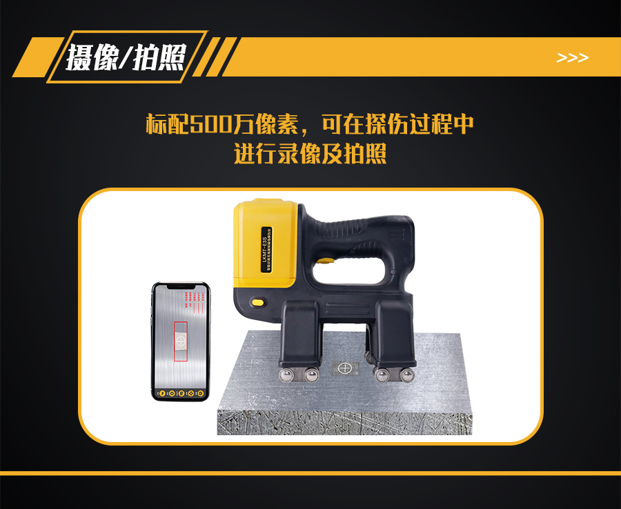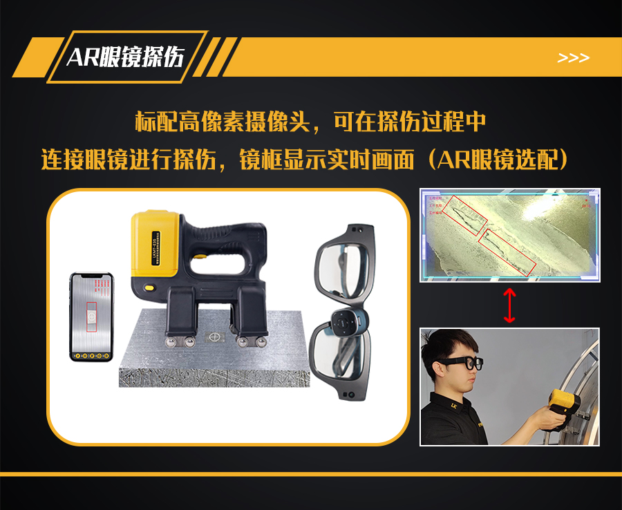 9、探頭內(nèi)部裝有500萬像素攝像頭,手機、平板電腦或AR眼鏡等手持終端安裝APP軟件,通過Wi-Fi與探頭鏈接,手持終端實時顯示探傷狀態(tài)。
